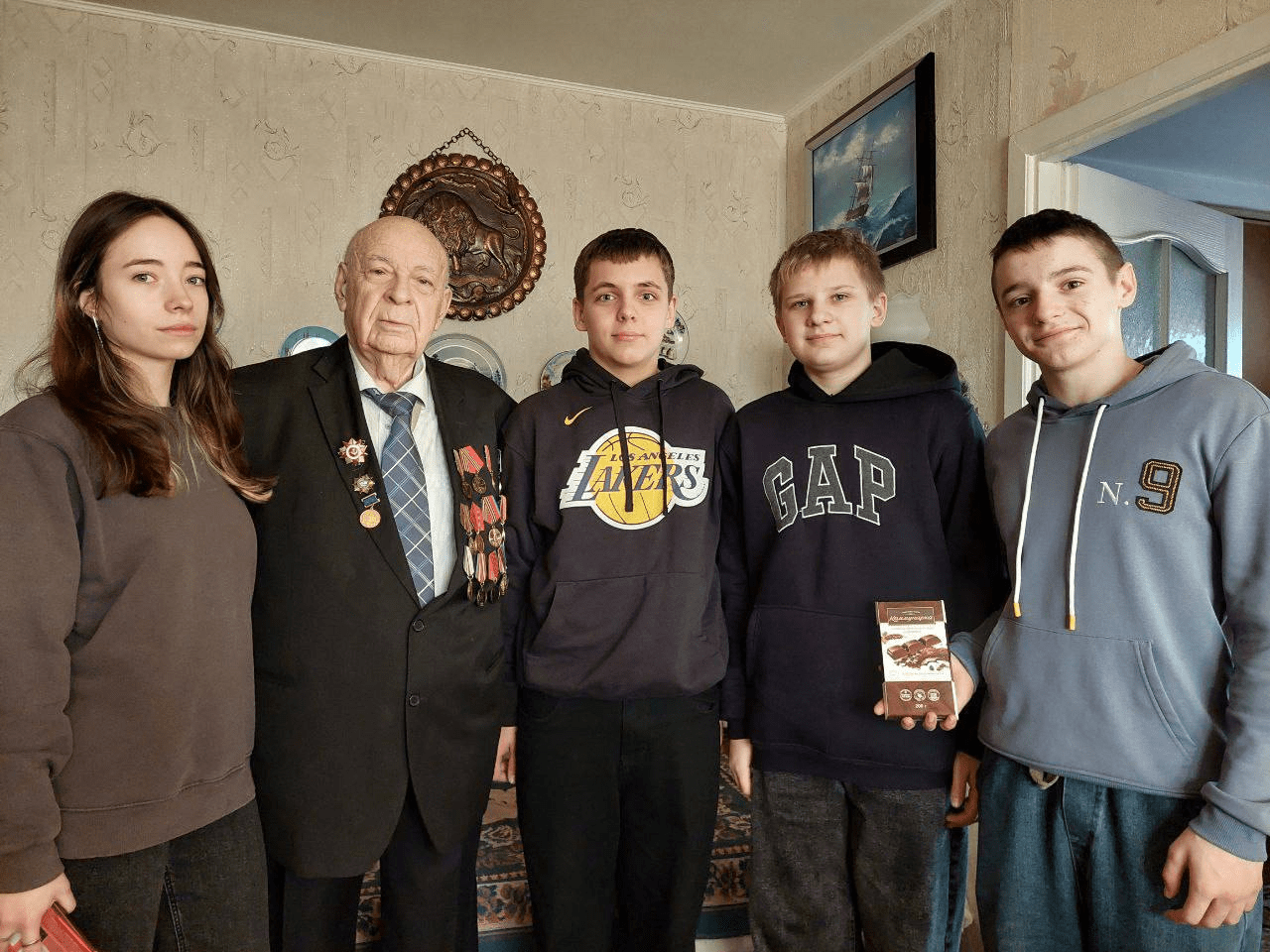 В рамках акции «Ветеран живёт рядом» учащиеся 8 «В» класса и члены волонтёрского отряда «Доброе сердце» посетили ветерана Великой Отечественной войны – Когана Александра Григорьевича, чтобы поздравить с наступающими праздниками и отдать дань уважения и благодарности за его подвиги. Этот день стал не только важным событием для ребят, но и незабываемым моментом для ветерана.