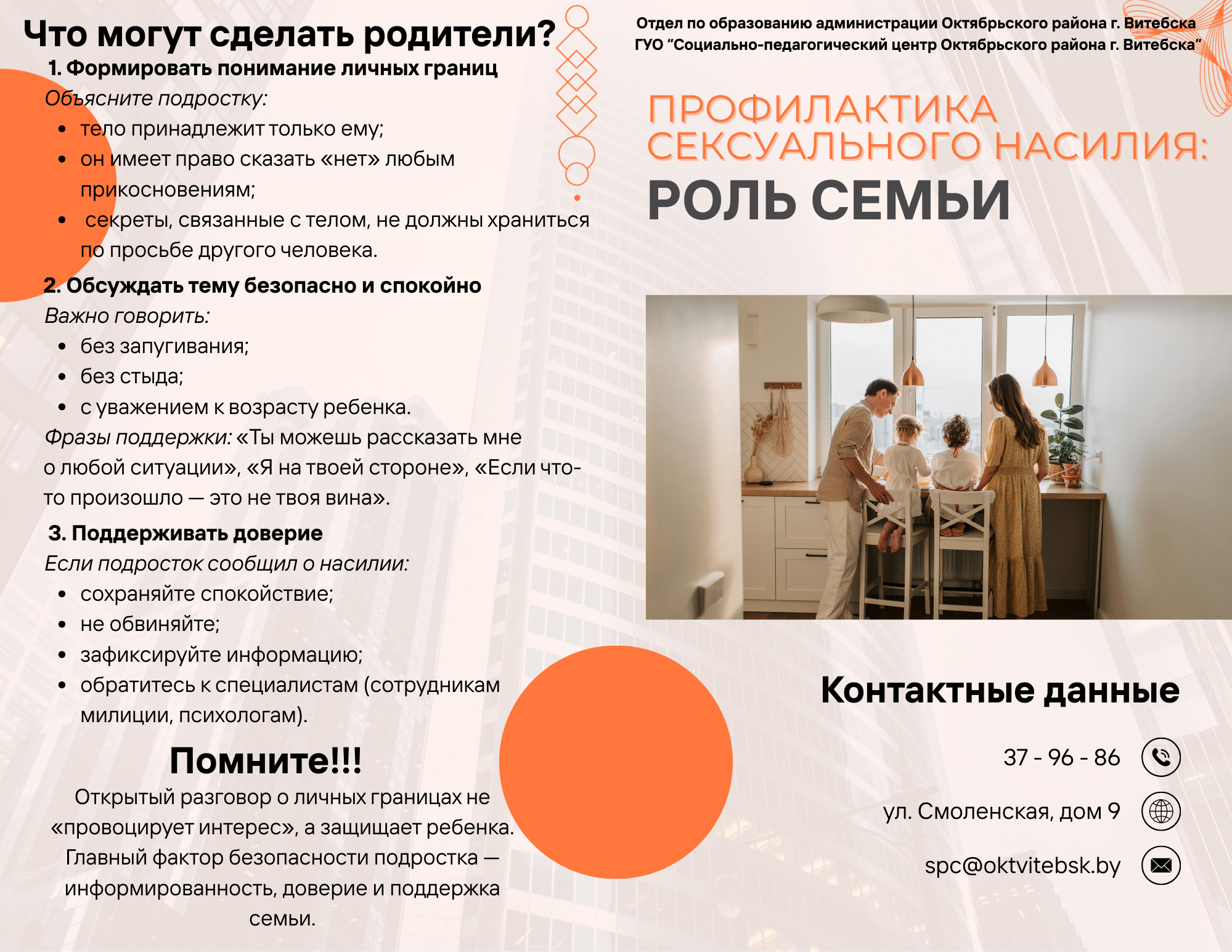 | Управление социальной защиты администрации Октябрьского района г.Витебска | г.Витебск,ул.Смоленская, д.9 | тел.649996, 649799, 649897 |